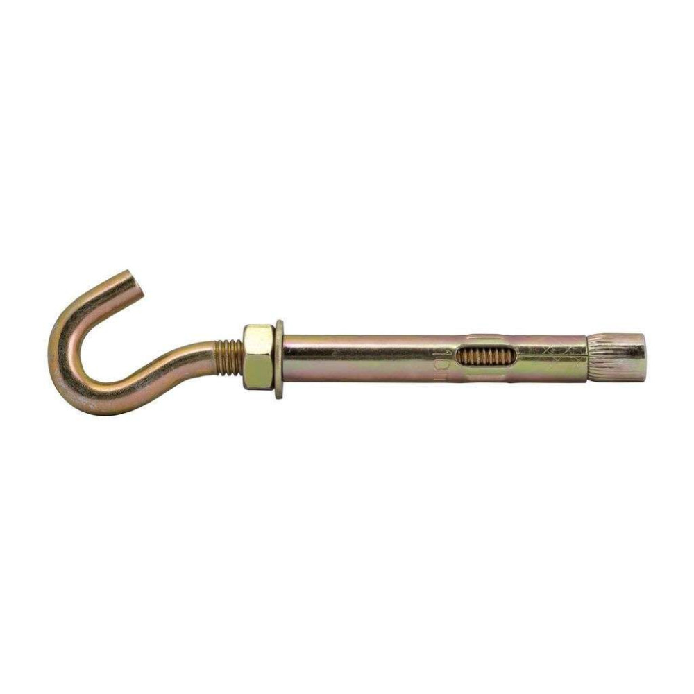 Анкерный болт с крюком HG Tech-Krep применяется для монтажа в плотное основание (бетон, полнотелый кирпич, строительный камень) съемных подвесных конструкций. Его используют для крепления ответственных и тяжеловесных изделий (строительные леса, тяжелые люстры, тросы, цепи и т.д.), поскольку анкер выдерживает большие нагрузки и отличается высокой надежностью. Состоит из шпильки с крюком на конце, втулки и конусной гайки. При закручивании крюка конусная гайка расклинивает втулку, что прочно позиционирует анкер в просверленном отверстии. Крепеж изготовлен из оцинкованной стали, что исключает коррозию.