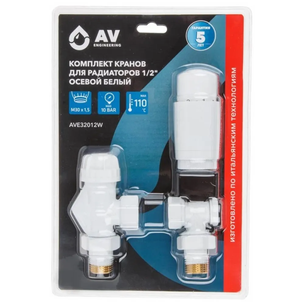Технические характеристики Комплект кранов для радиаторов осевой ф 1/2" AV Engineering белый