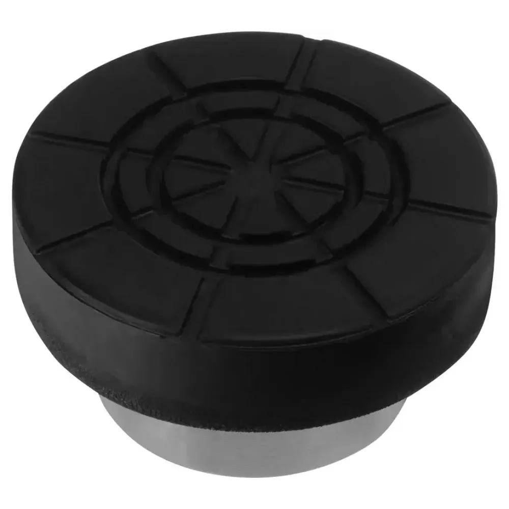 Увеличенная площадь опоры — диаметр накладки более чем вдвое превышает диаметр штока домкрата, что позволяет равномерно распределить нагрузку и обеспечить устойчивость груза. Надежная фиксация — эластичная резина плотно прилегает к поверхности груза, предотвращая его соскальзывание.