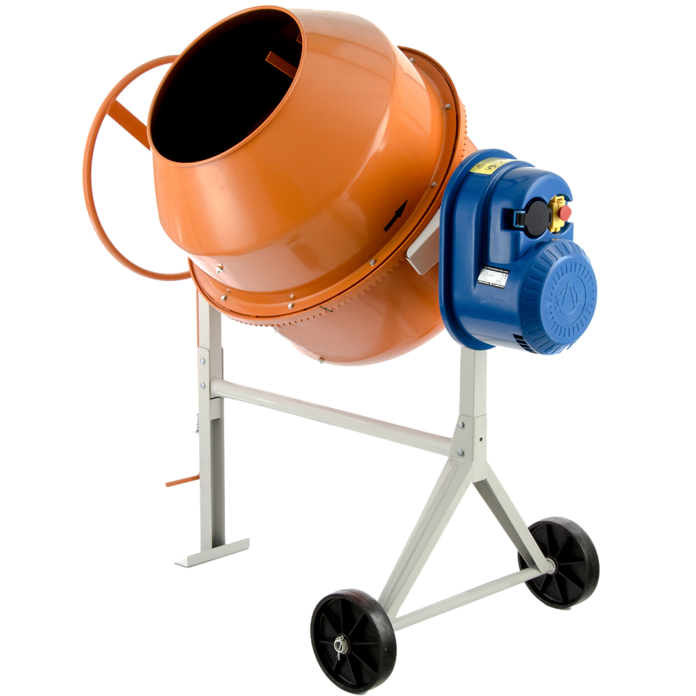 -Усиленная рама обеспечивает устойчивость, а прочные колеса позволяют легко транспортировать бетоносмеситель по строительной площадке.