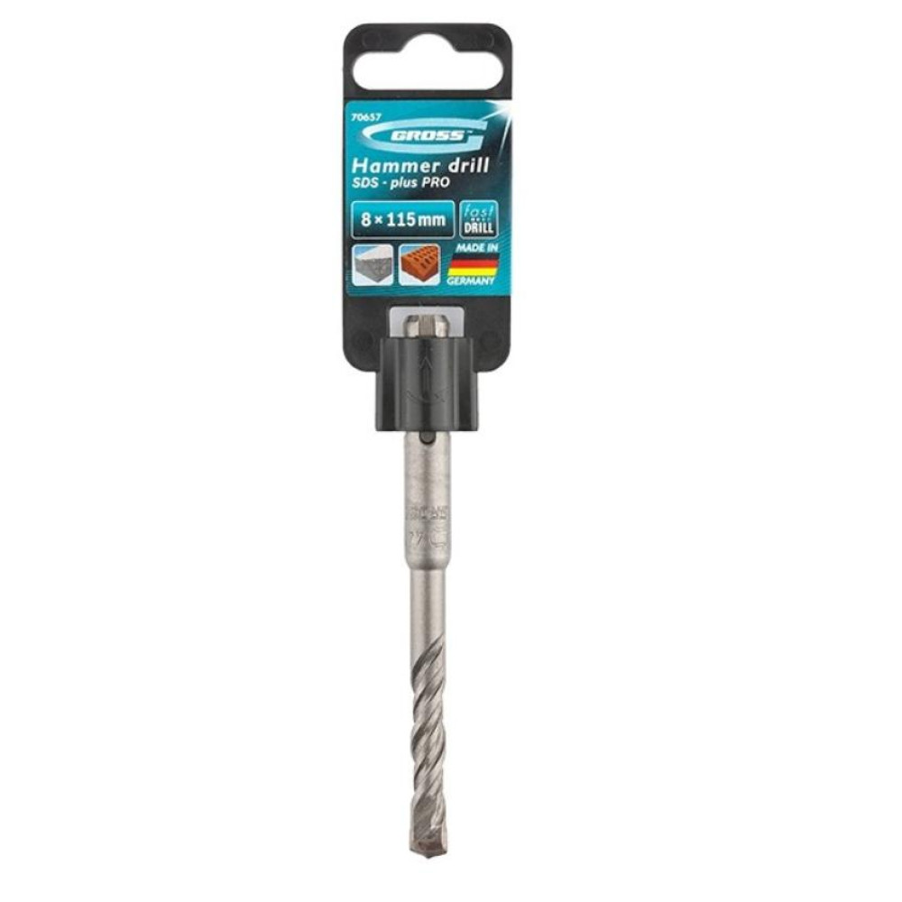 Бур по бетону Gross PRO 70657, 8 х 110 мм предназначен для сверления отверстий диаметром 8 мм в бетоне, кирпиче и камне. С этими задачами он справляется благодаря двухкромочной твердосплавной пластине. Бур используется с перфораторами, оснащенными патронами SDS Plus, и используется как в бытовых, так и в профессиональных целях.