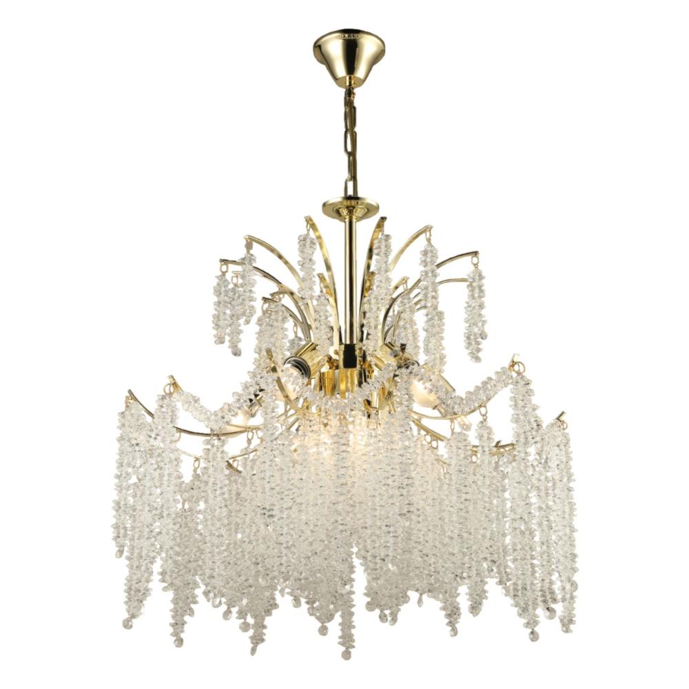 Светильник ЭкономСвет 15027/9GD+CL выполнен из материалов металл и хрусталь; цвета: золото и прозрачный. Цоколь E27 рассчитан на лампы максимальной мощности до 60 Вт, а максимальная площадь освещения составит до 21 м².