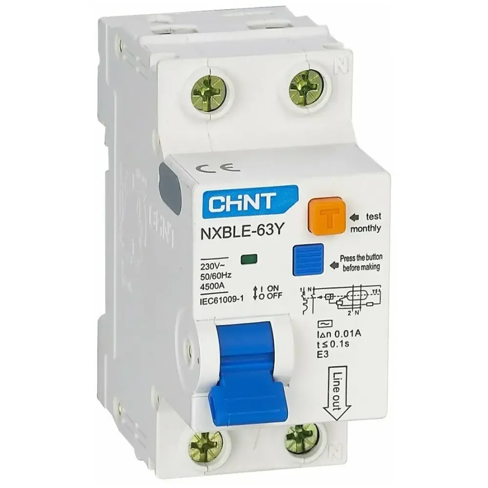 Технические характеристики Дифференциальный автомат 2-пол. 20А С 30мА NXBLE-63Y (R) CHINT 105543