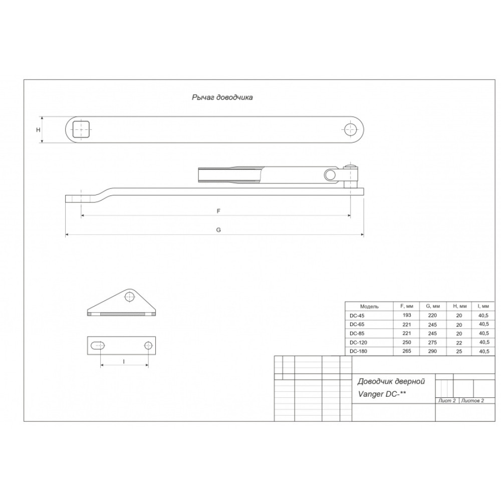 Технические характеристики Доводчик Vanger DC-65-SL (16397)
