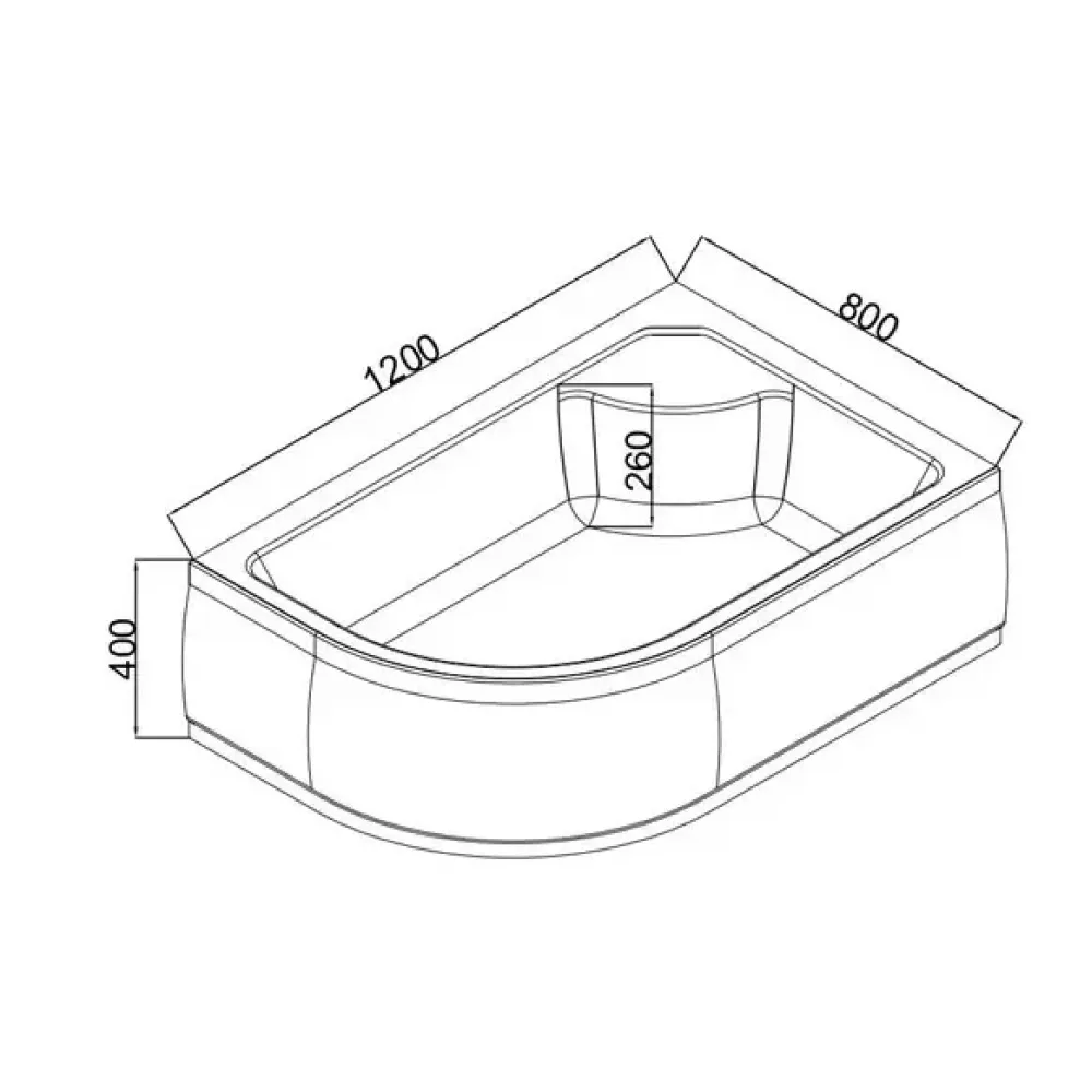 Технические характеристики Поддон акриловый EVA GOLD 120х80х40см левый, полукруглый с сифоном EG230018