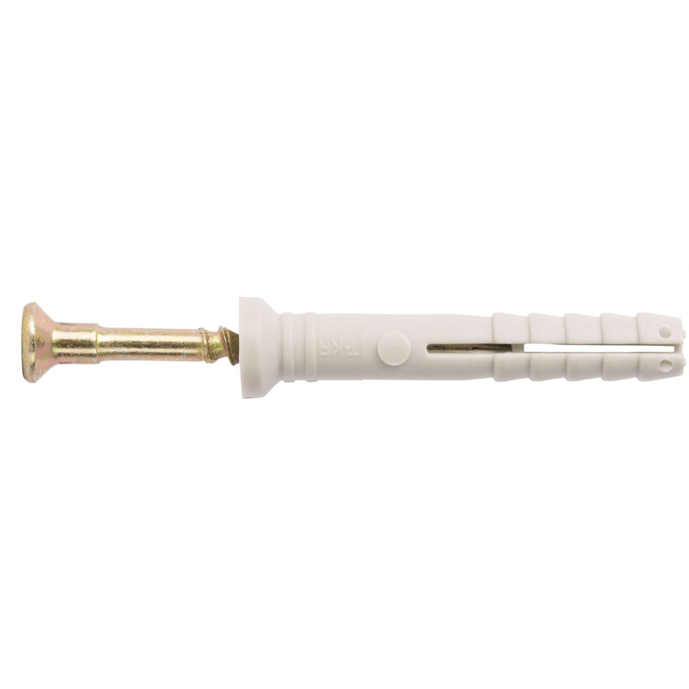 Дюбель-гвоздь SM-L состоит из нейлонового дюбеля с потайным бортом и стального оцинкованного гвоздь-шурупа. Монтаж производится забиванием гвоздя молотком, что позволяет значительно повысить производительность работ. Может быть демонтирован отверткой или шуроповертом. Предназначен для крепления к бетону, полнотелым материалам, кирпичу с пустотами, пенобетону всевозможных деревянных деталей, включая обрешетку под штукатурку.