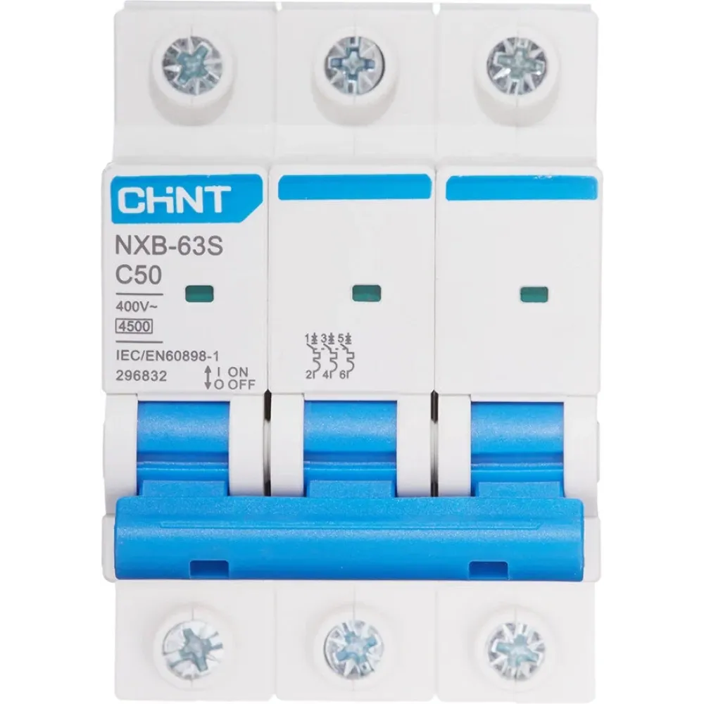 Выключатель автоматический 3-пол. 50A C 4,5кА NXB-63S (R) CHINT 296832 предназначен для применения в сетях переменного тока напряжением 230/400 В частотой 50/60 Гц с номинальным током до 50 А для нечастых включений и отключений нагрузок, а также защиты от перегрузки и короткого замыкания в электроустановках жилых и общественных зданий. Применимы в бытовых и аналогичных электроустановках, с доступом не обученного специально персонала.