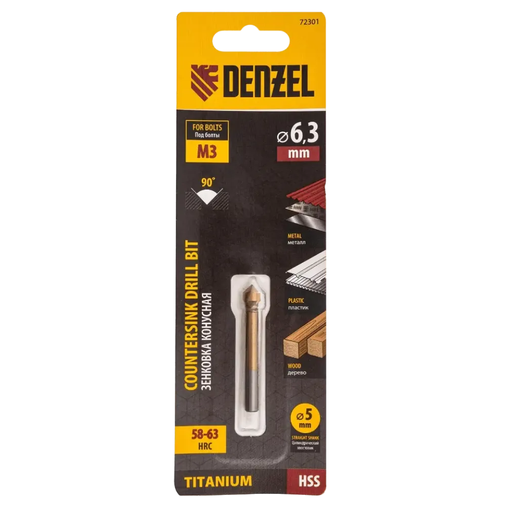 Технические характеристики Зенкер конусный Denzel по металлу под М3 (72301)