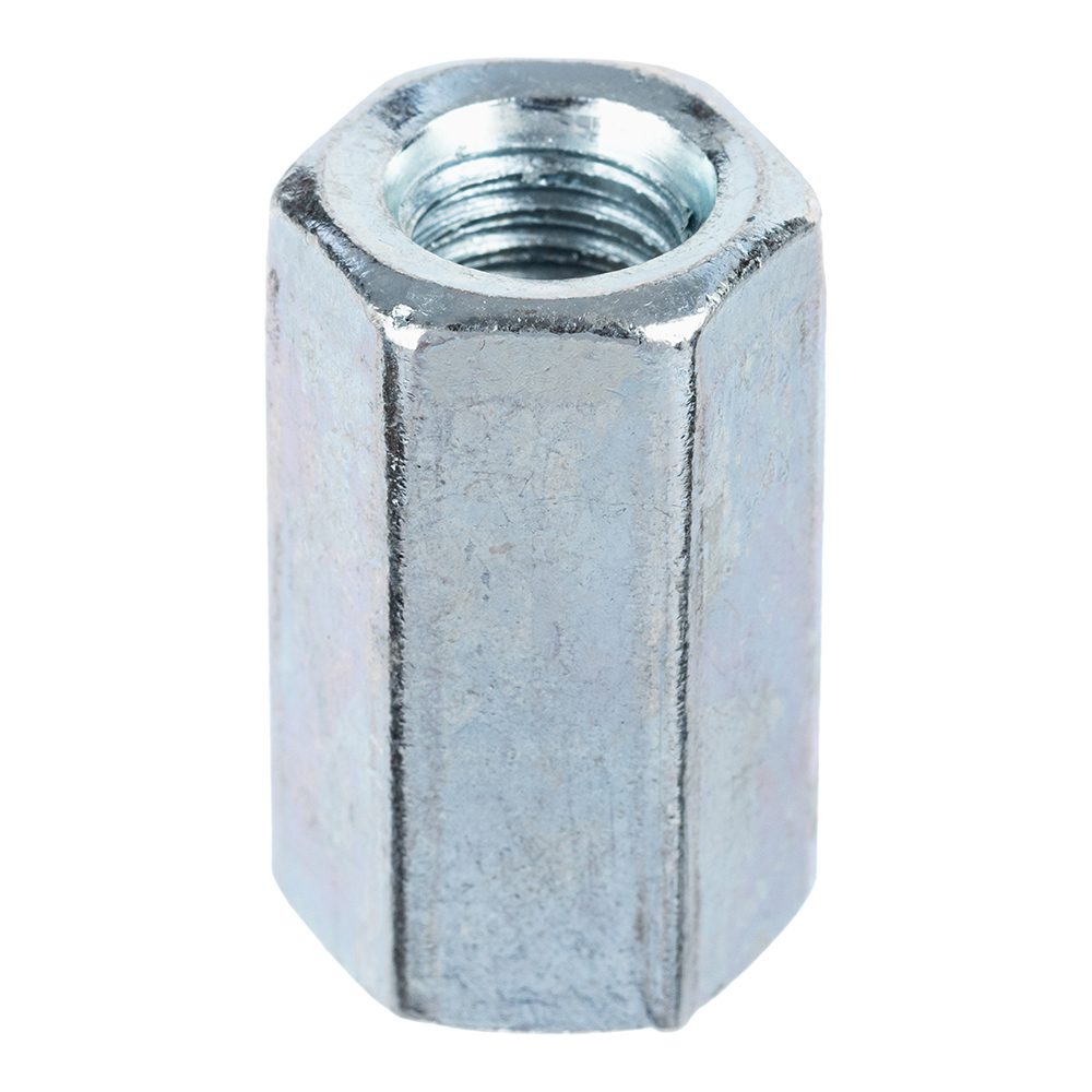 Используется для соединения различных резьбовых элементов, таких как, шпилька, болт, шуруп-шпилька и т.д. Часто используется для наращивания шпилек при монтаже вентиляции, подвесных потолков, водопроводов, газопроводов и т.д.