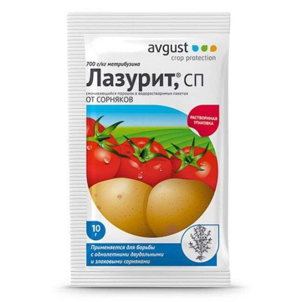 | СоставЛазурит - смачивающийся порошок, содержащий 700 г/кг метрибузина. |