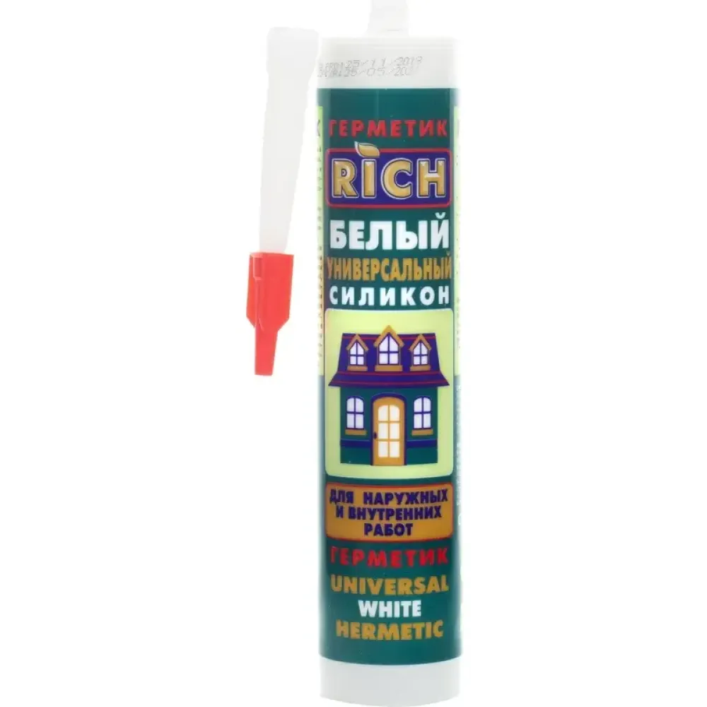 Герметик силиконовый RICH предназначен для строительных и общих ремонтных работ: кухни и ванные, вентиляционные системы, морозильные камеры, остекление. Затвердевший герметик устойчив к воздействию химических растворов, а также к различным атмосферным явлениям: дождь, снег, экстремальные температуры, УФ-лучи, морская вода.