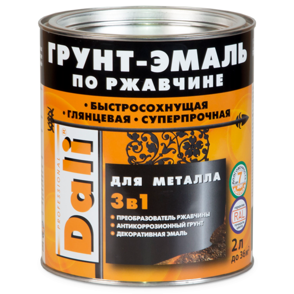 Технические характеристики Грунт-эмаль DALI по ржавчине 3 в 1 гладкая RAL 6029 зелёная 2 л
