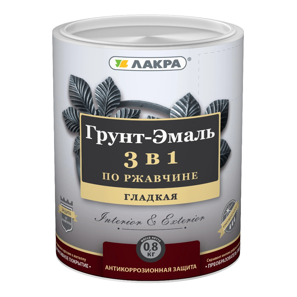 Грунт-эмаль Лакра 3 в 1 на алкидной основе, сочетает в себе свойства преобразователя ржавчины, антикоррозионного грунта и декоративной эмали. После высыхания образует глянцевое покрытие, устойчивое к механическим и атмосферным воздействиям.