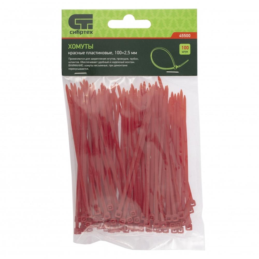 Стяжка кабельная СИБРТЕХ красная 100 x 2,5 мм (45500)