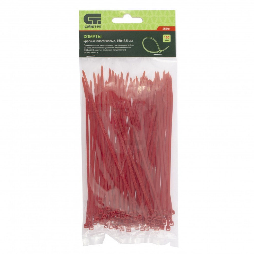 Стяжка кабельная СИБРТЕХ красная 150 x 2,5 мм (45501)