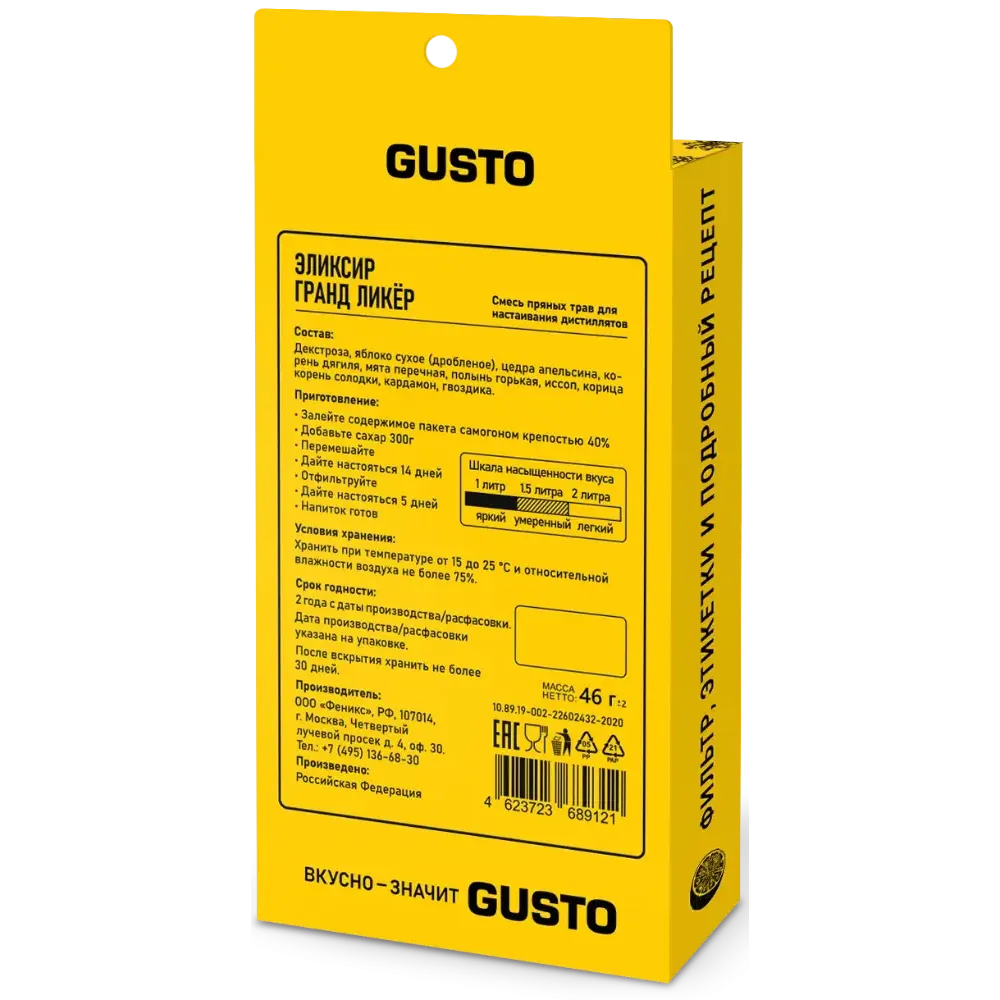 Технические характеристики Набор приправ GUSTO Элексир Гранд ликер (46 гр.)