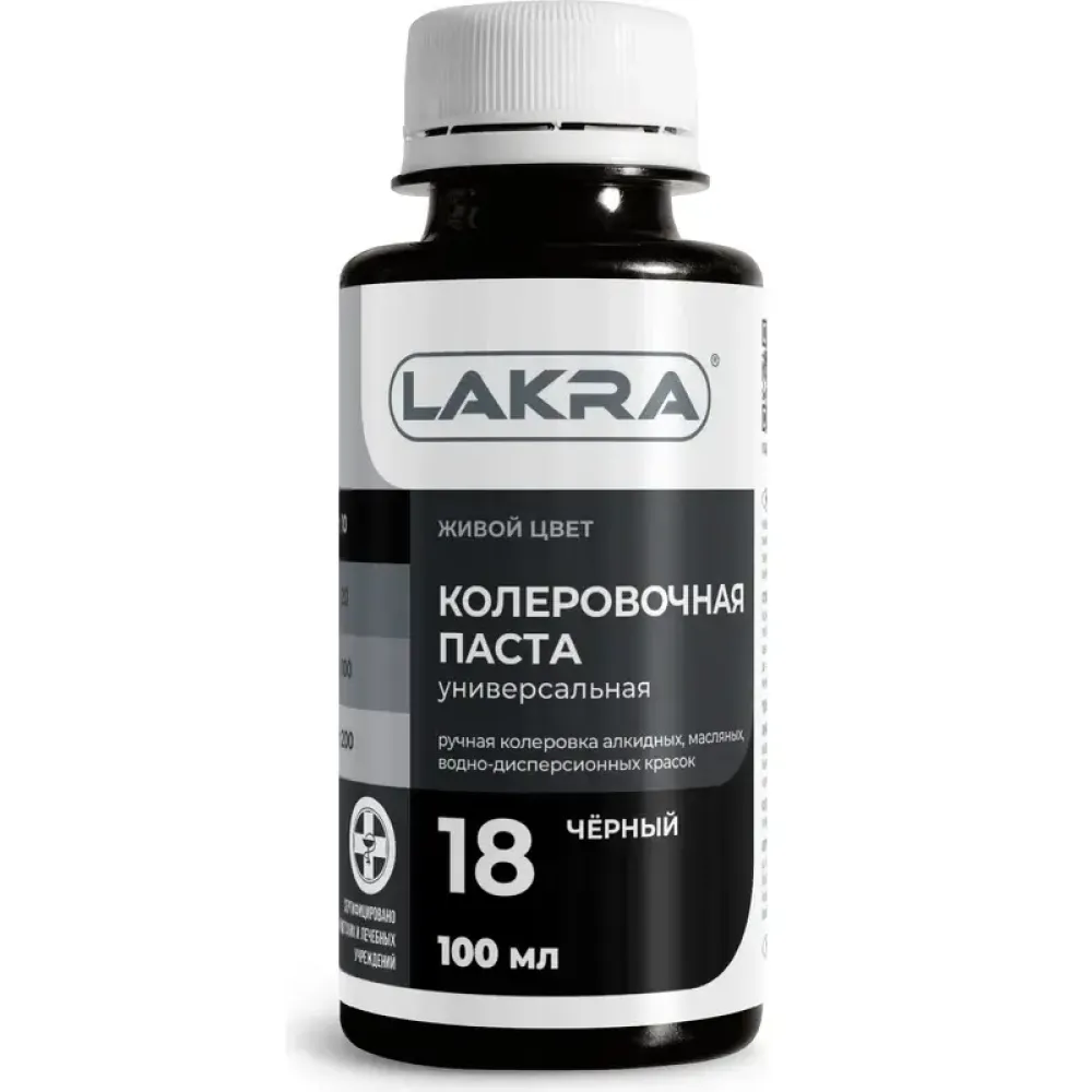 Колер универсальный Лакра №18 черный применяется для ручной колеровки алкидных, масляных, воднодисперсионных красок и составов. Самостоятельного применения не имеет. Не использовать в чистом виде и не разбавлять водой или растворителями.