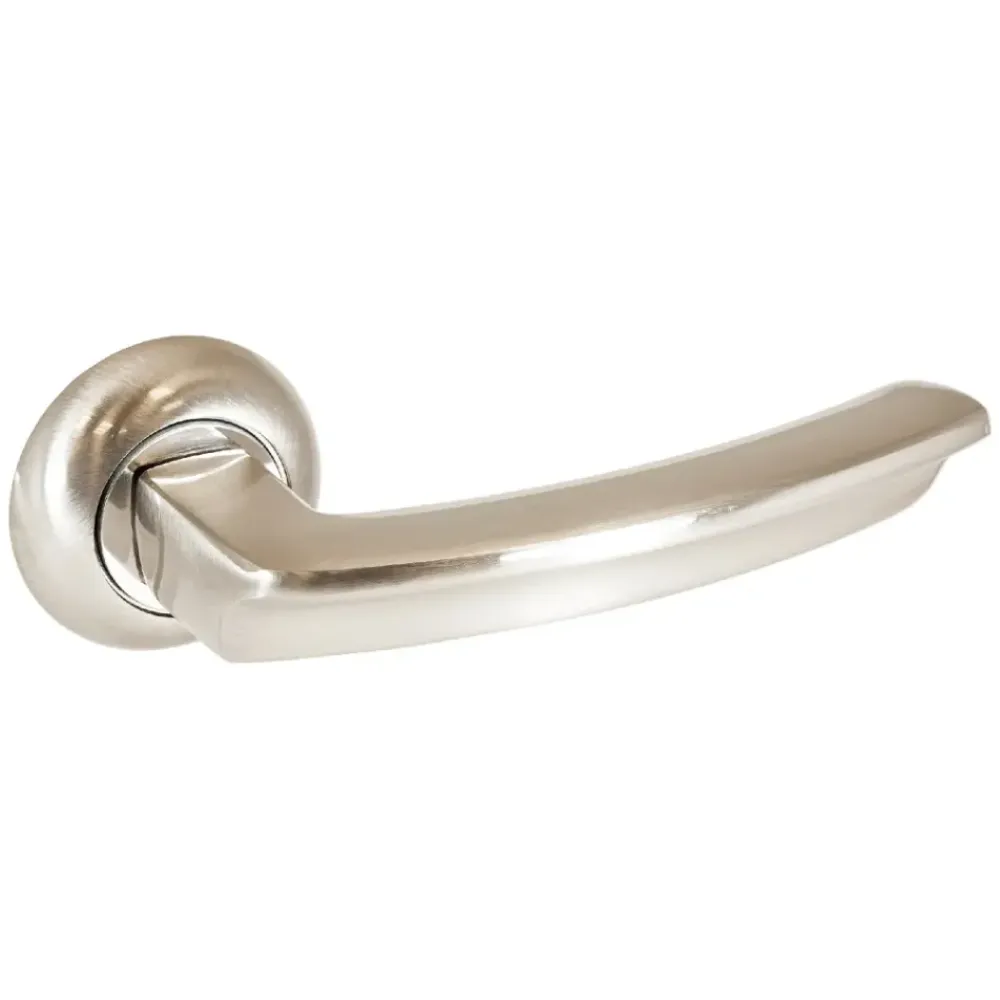 Ручки раздельные АЛЛЮР "ВЕРНЕР" SN (1180) (16096) дверная межкомнатная на круглой накладке. Ручка имеет эргономичную и безопасную форму без острых краев. Многослойная гальваника позволяет покрытию ручки долго сохранять свой внешний вид.