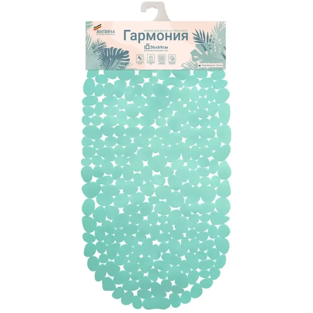 Коврик для ванной на присосках БАЛИЙСКИЙ БЕРЕГ "Морская галька" подходит для всех видов ванн и душевых кабин. Резиновый коврик для ванны защищает от падения во время принятия душа, специальные присоски обеспечивают надежное крепление коврика к поверхности ванны или для душевой кабины. Такой коврик для ванной силиконовый подойдет как для детей, так и их родителей. Коврик в ванную не меняет своих свойств при температурных перепадах и обладает гипоаллергенными свойствами.