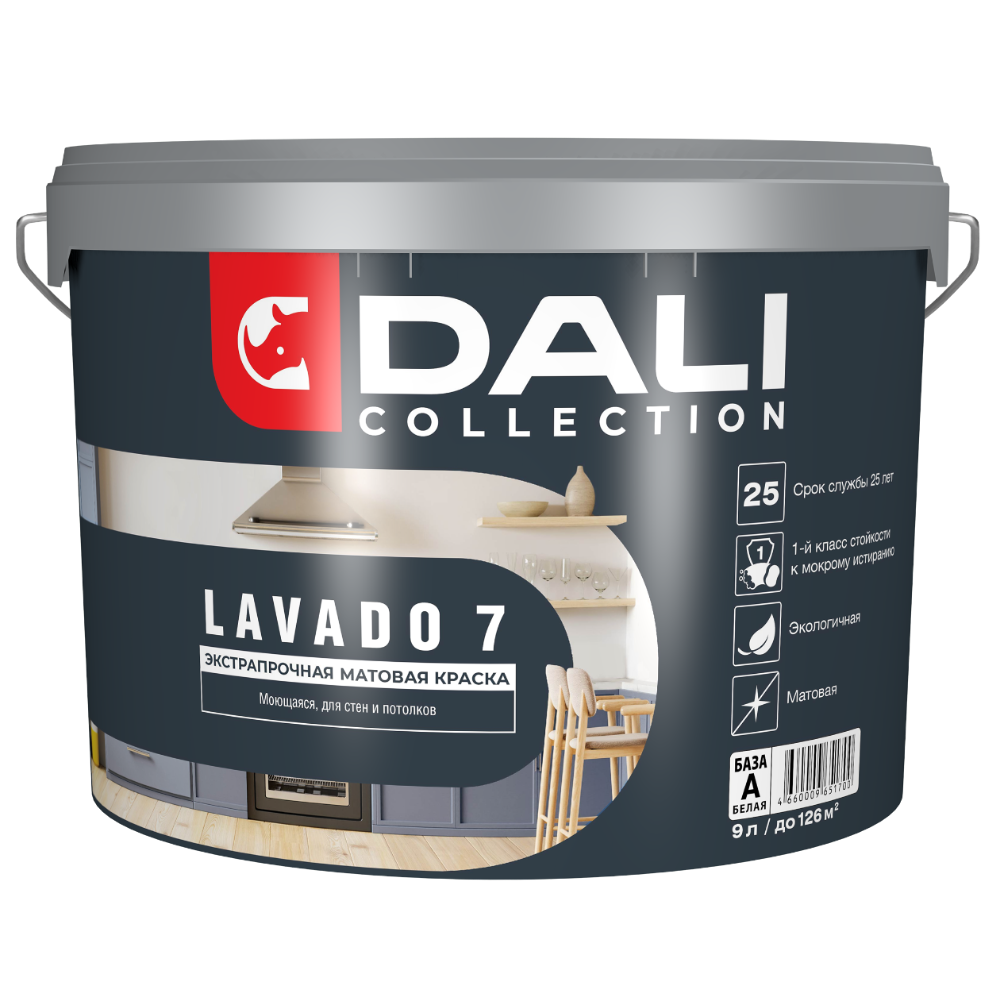 Экстрапрочная интерьерная краска DALI COLLECTION LAVADO 7 для всех типов помещений с высоким уровнем эксплуатационной нагрузки и влажности. Образует безупречное матовое покрытие, абсолютно устойчивое к регулярному интенсивному мытью и дезинфекционной обработке с использованием моющих и чистящих средств. Легко наносится без разбрызгивания, потеков, пятен и полос. Разрешена к применению в детских дошкольных, общеобразовательных, спортивных и лечебно-профилактических учреждениях.