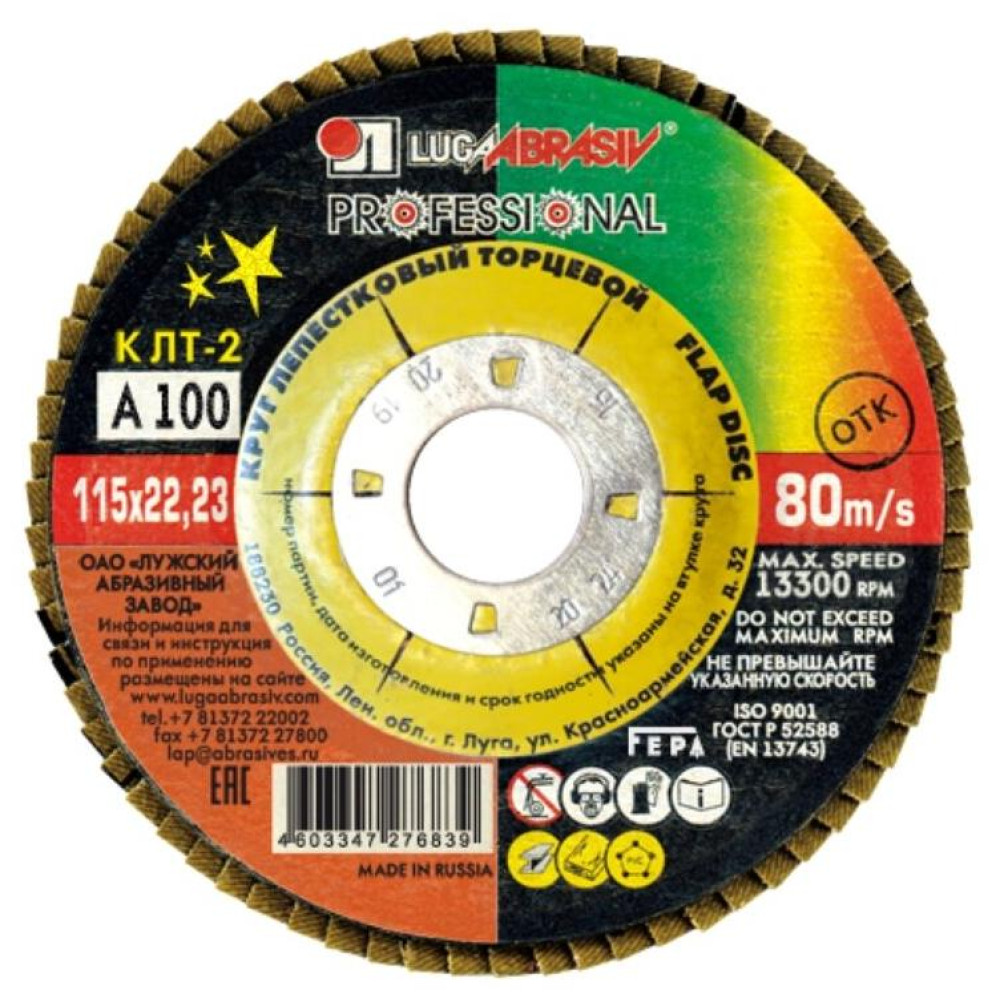Технические характеристики Круг лепестковый ЛУГА ф115х22,2 А 100