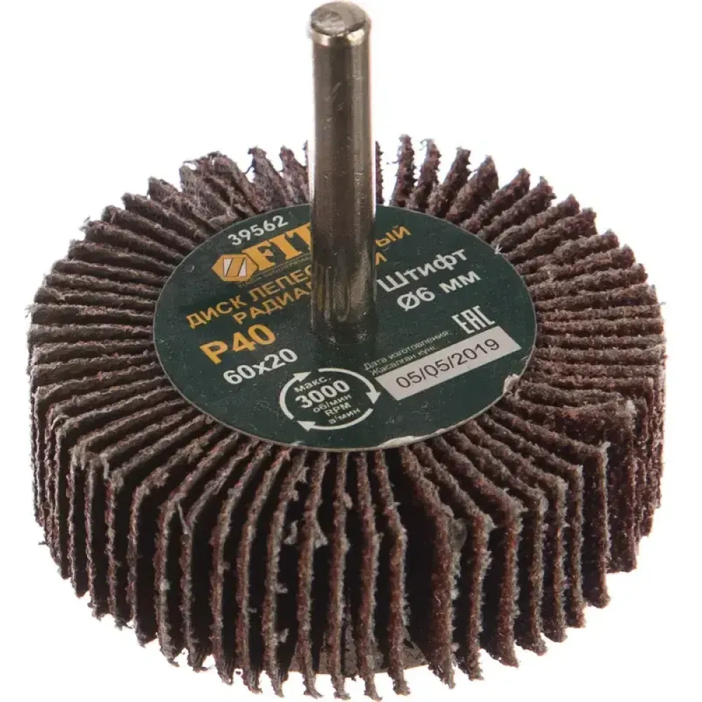 Круг лепестковый д/дрели FIT 60х20х6 мм P 40 (39562)