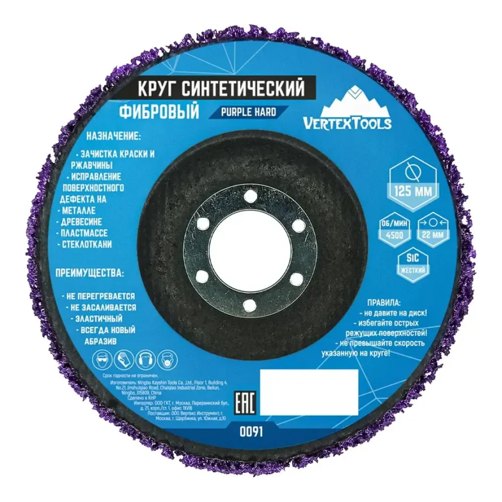Диск зачистной полимерный Vertextools ф125х22,2мм фиолетовый (0091) предназначен для снятия ржавчины и краски с металлических и деревянных поверхностей. Идеально подходит для тонколистового металла, криволинейных поверхностей. Сочетает в себе высокую производительность и качество шлифования. Круг не засаливается в процессе работы, не оставляет на поверхности грубых царапин. Безопасен в работе.