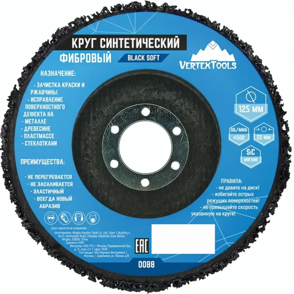 Технические характеристики Диск зачистной полимерный Vertextools ф125х22,2мм мягкий (0088)