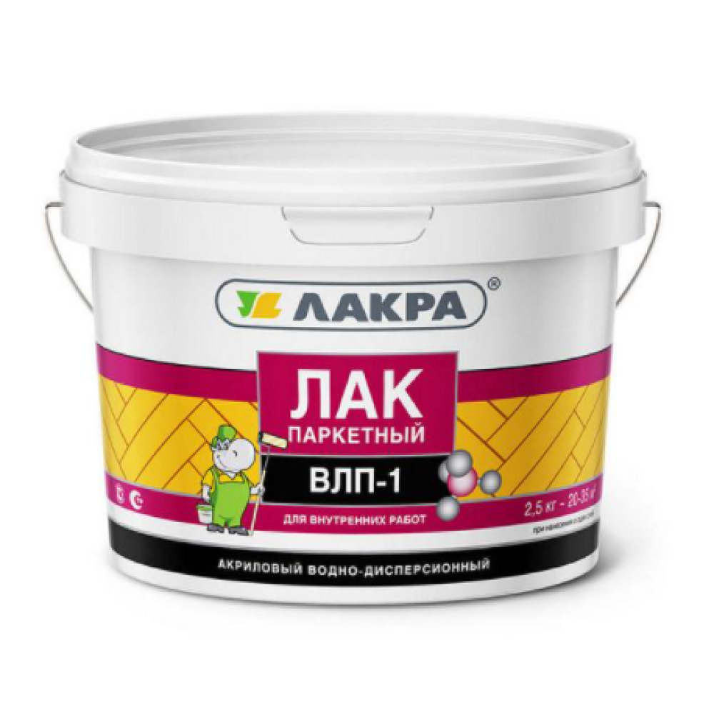 Лак Лакра ВЛП-1 - высококачественный паркетный лак на основе водной акриловой дисперсии. Придает деревянным поверхностям красивый декоративный вид. Образует прочное влагостойкое и износоустойчивое покрытие. Обладает высокой скоростью высыхания, что дает возможность окрасить поверхность в 2 слоя за одни сутки. Область применения: Применяется для покрытия паркетных полов жилых помещений, а также других деревянных поверхностей при проведении внутренних отделочных работ.