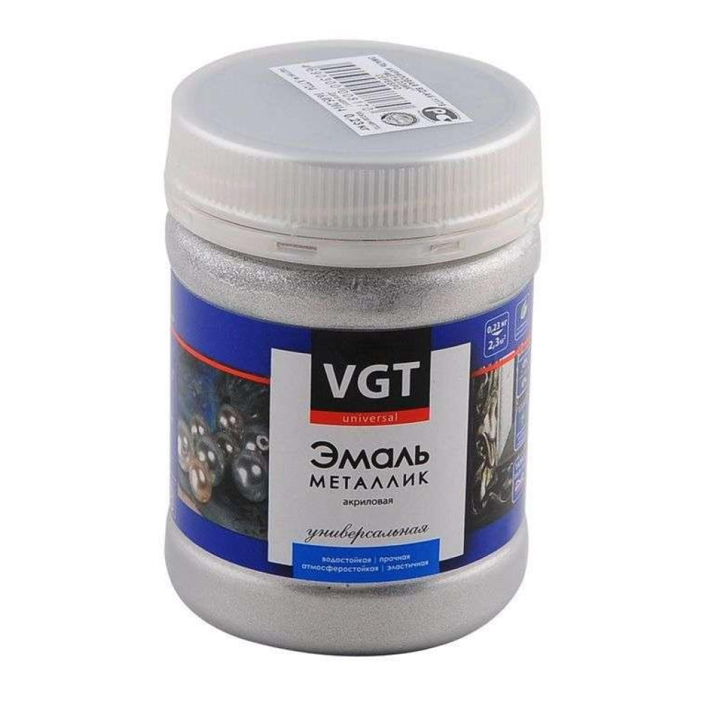 Технические характеристики Эмаль в/д VGT акрил. 1179 универсал МЕТАЛЛИК"серебро" 0,23кг
