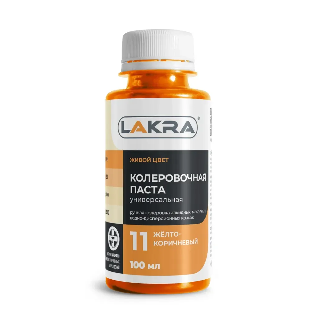 Колер универсальный Лакра №11 желто-коричневый применяется для ручной колеровки алкидных, масляных, воднодисперсионных красок и составов. Самостоятельного применения не имеет. Не использовать в чистом виде и не разбавлять водой или растворителями.