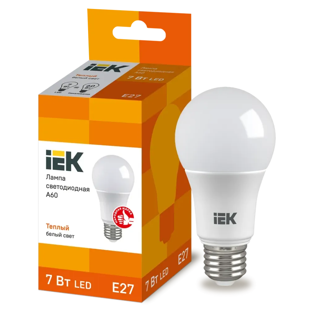 Технические характеристики Лампа E27 светодиод.7Вт 3000К IEK А60 (630Lm)