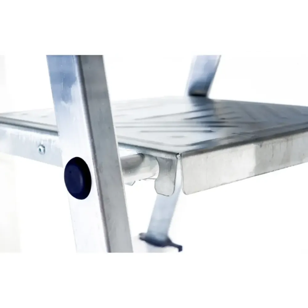 Алюминиевая стремянка АЛЮМЕТ АМ709 может использоваться для проведения строительных, монтажных, ремонтных и других работ на высоте до 2.7 м. Переносная конструкция состоит из основной части со ступенями, опорной части и рабочей площадки. Дуга безопасности является продолжением стороны, по которой осуществляется подъем . Модель оснащена противоскользящими опорами из пластика и рифлеными ступенями, повышающими ее безопасность. Стремянка рассчитана на эксплуатацию внутри и снаружи помещений и способна выдерживать нагрузку до 150 кг.