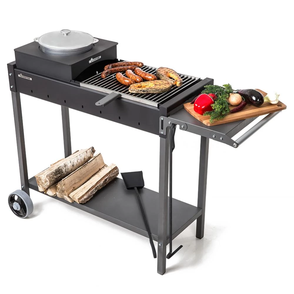 Вместимость15 шампуров/2 решетки по 42 см Габариты топки850 х 340 х 140 мм Колесада