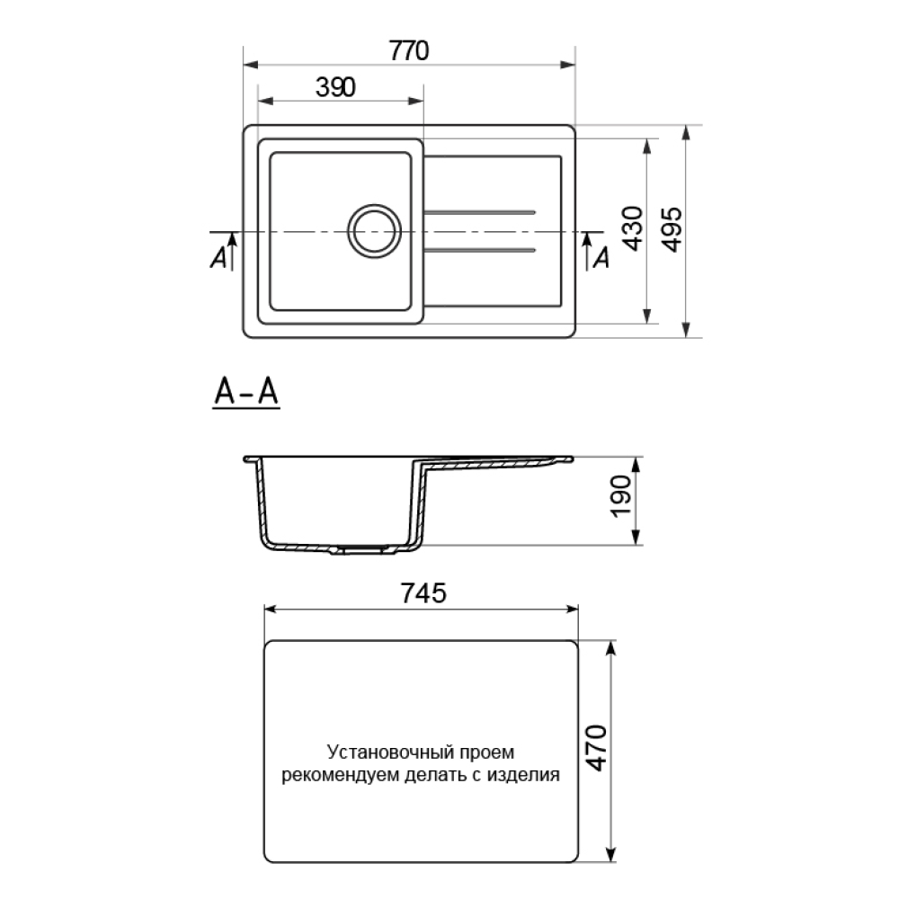 | Поверхностьматовая | Размер495 х 770 x 190 мм | Размер чаши390 х 430 мм |