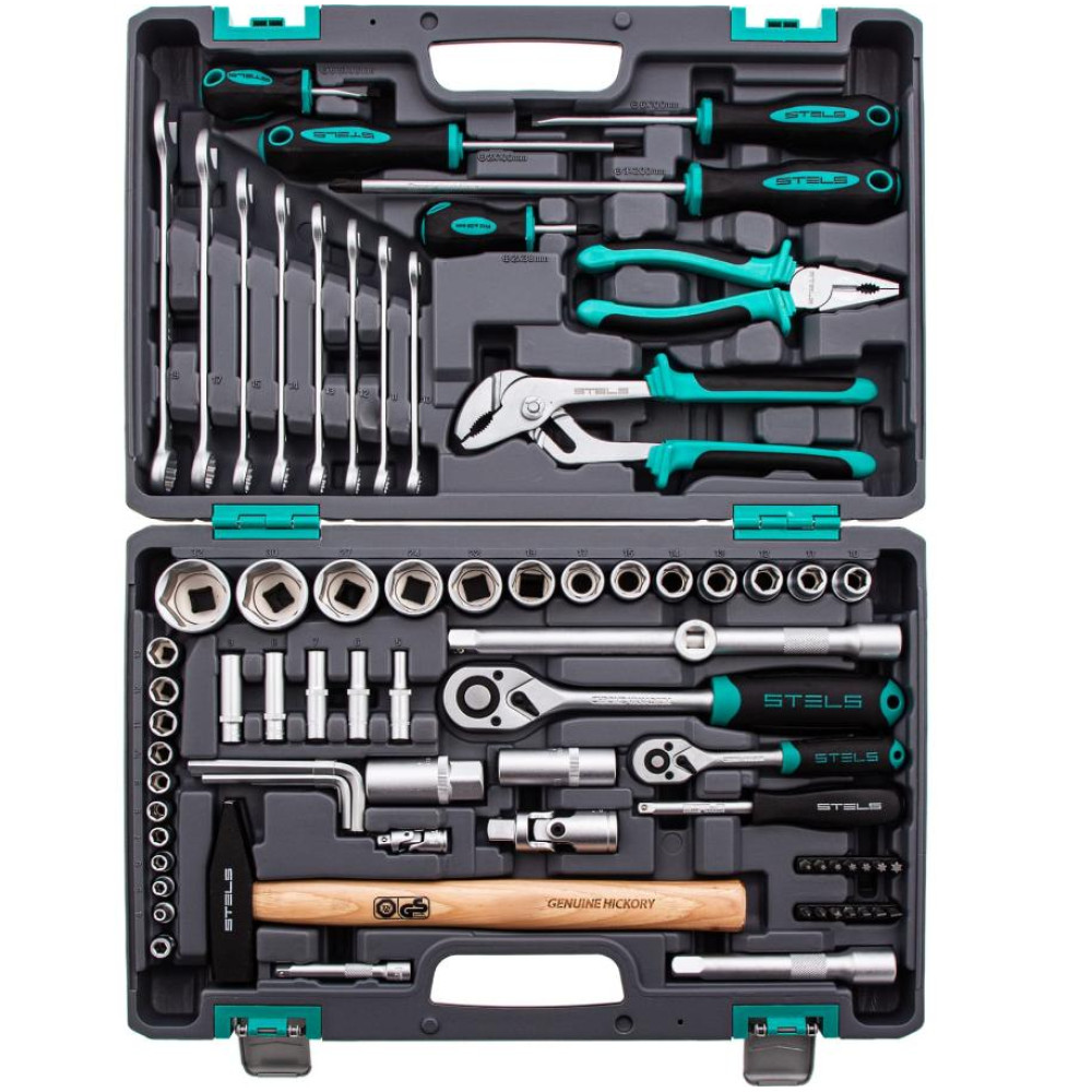 Набор инструментов STELS 76 предметов 14104 - это многофункциональный комплект, который подходит для технического обслуживания автомобиля, а также для проведения ремонта дома и на даче. В наборе 76 предметов, каждый из них изготовлен из высококачественной хромованадиевой стали, стойкой к нагрузкам, долговечной. Биты и отвертки выполнены из стали марки S2. Кейс служит для хранения и переноски инструментов.