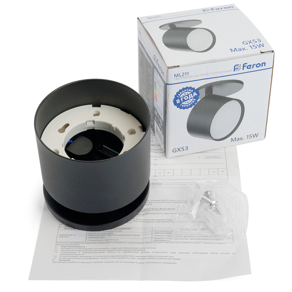 Технические характеристики Светильник накладной FERON ML211 GX53 черный