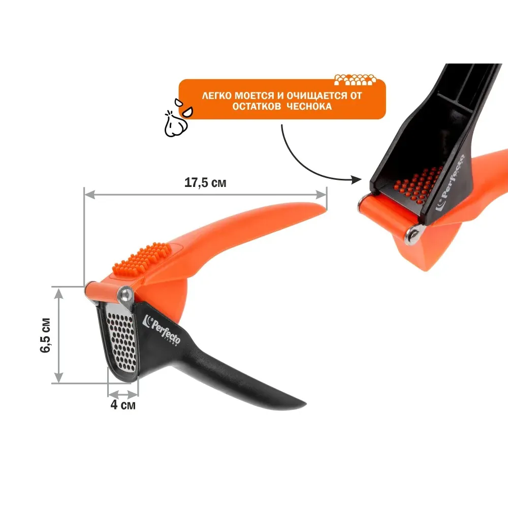 Давилка для чеснока PERFECTO LINEA Handy — удобный кухонный ручной инструмент для измельчения чеснока. Выполнен из качественных материалов: ABS-пластика и нержавеющей стали, что гарантирует долговечность и практичность. Этот пресс станет незаменимым помощником на кухне и облегчит процесс приготовления блюд.