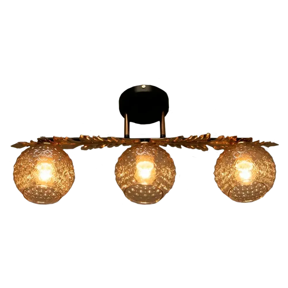 Светильник выполнен из материала металл, цвет черный, золото. Плафоны (светорассеиватели) выполнены из материала стекло, цвет янтарный. Цоколь E27 рассчитан на лампы максимальной мощности до 60 Вт, а максимальная площадь освещения составит до 7 м².