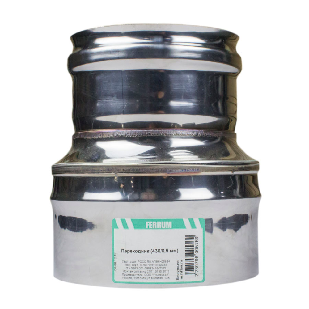 Технические характеристики Дымоход переходник 0,5мм Ф100М-135П (AISI 430)