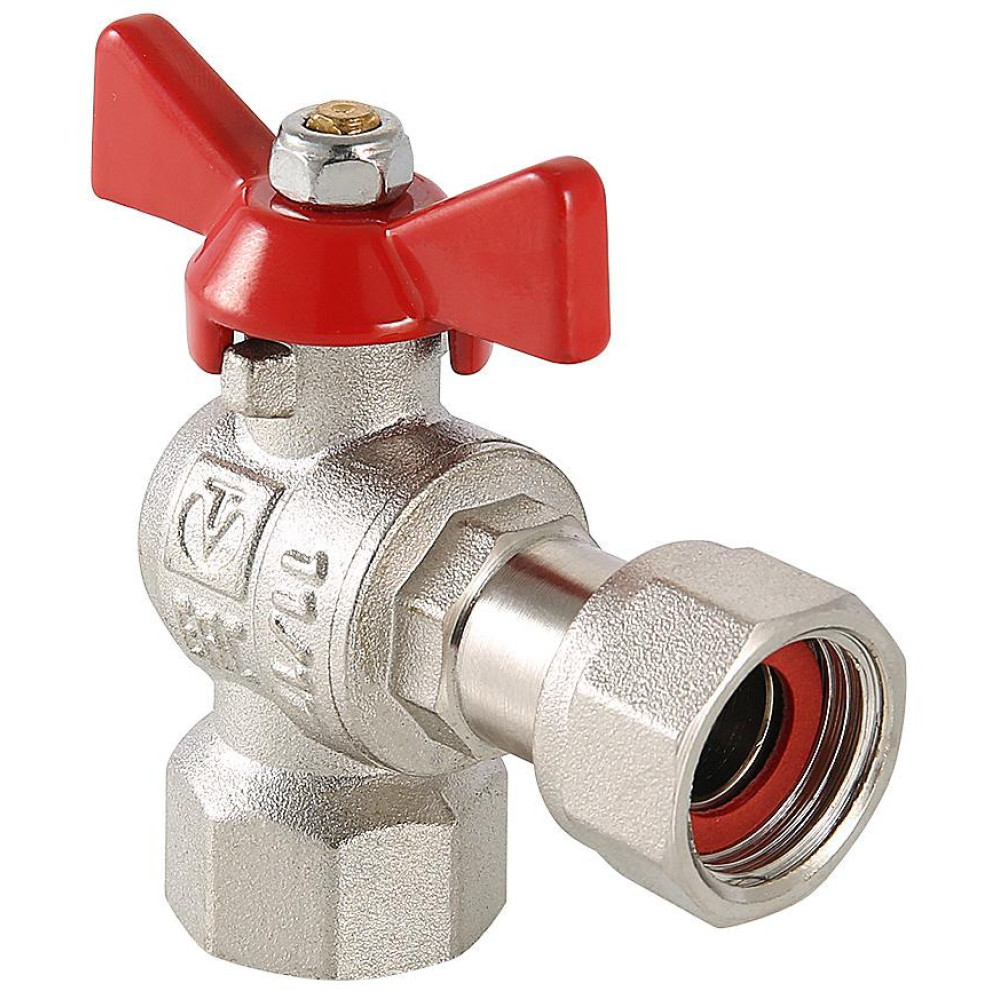 Угловой шаровый кран с накидной гайкой VALTEC VT.266.N.0404 обеспечивает разбивку трубопровода на отсекаемые ремонтные участки. Кран рассчитан на использование в системах с максимальной температурой рабочей среды 130°C и номинальным давлением 40 бар. Средний полный ресурс крана – 55 тыс. циклов. Накидная гайка крана соединяется с ответной наружной резьбой трубопровода или арматуры через плоскую прокладку из безасбестового паронита.