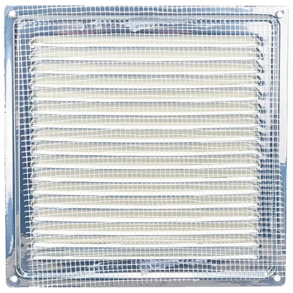 Решетка металлическая с сеткой 1010ВР предназначена для циркуляции в помещении чистого воздуха. Устройство является частью приточно-вытяжной вентиляционной системы. Ламели в виде жалюзи корректируют воздушный поток в определенном направлении. Монтируется как внутри, так и снаружи здания.