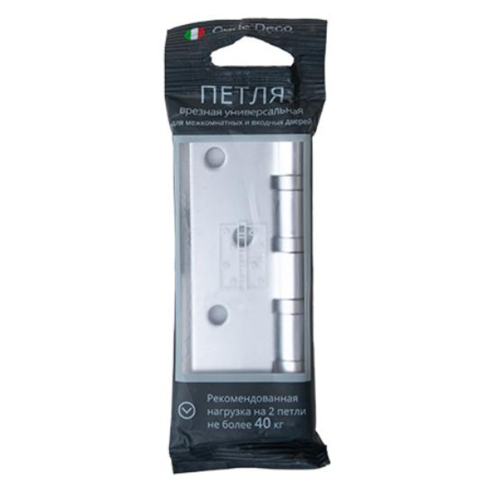 Петля врезная Code Deco универсальная и может комплектовать деревянные двери и с правым и с левым открыванием. Изготавливается из стали с гальваническим покрытием.