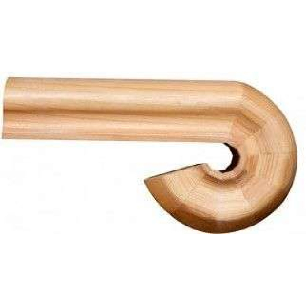 Окончание поручня из хвои - комплектующее для лестничных конструкций, обладающее ввиду природных свойств породы рядом преимуществ. В их числе: простота в обработке и ремонте, хорошая переносимость различного рода покрытий и пропиток, благодаря чему эксплуатационные характеристики изделия могут быть значительно увеличены.