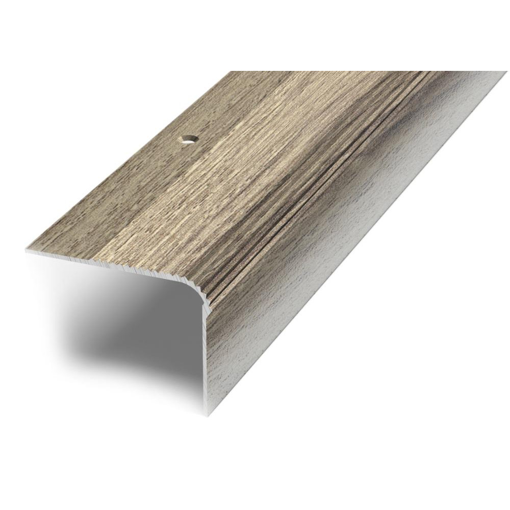 Алюминиевый профиль с монтажными отверстиями и округленной торцевой стороной. Имеет зону рифления против скольжения.
