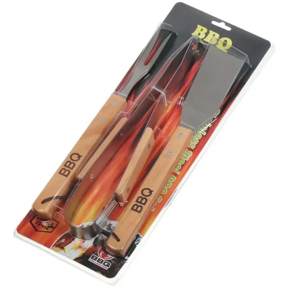 Набор для барбекю костровой, нержавеющая сталь, дерево, 3 предмета (лопатка, щипцы, вилка для гриля)