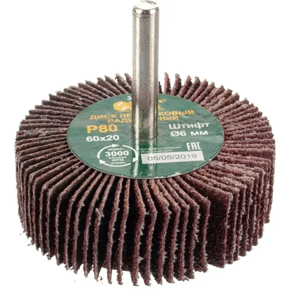 | Типкруг лепестковый | Абразив шлифовального дискаоксид алюминия | Диаметр хвостовика6 мм |