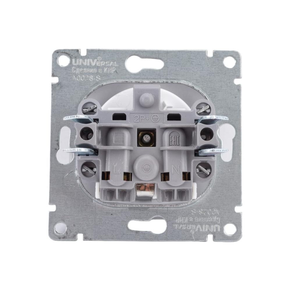 Розетка 2P+Е Universal Афина А0028-S имеет современный дизайн. Наличие заземляющих контактов способствует более безопасной эксплуатации бытовых электроприборов.