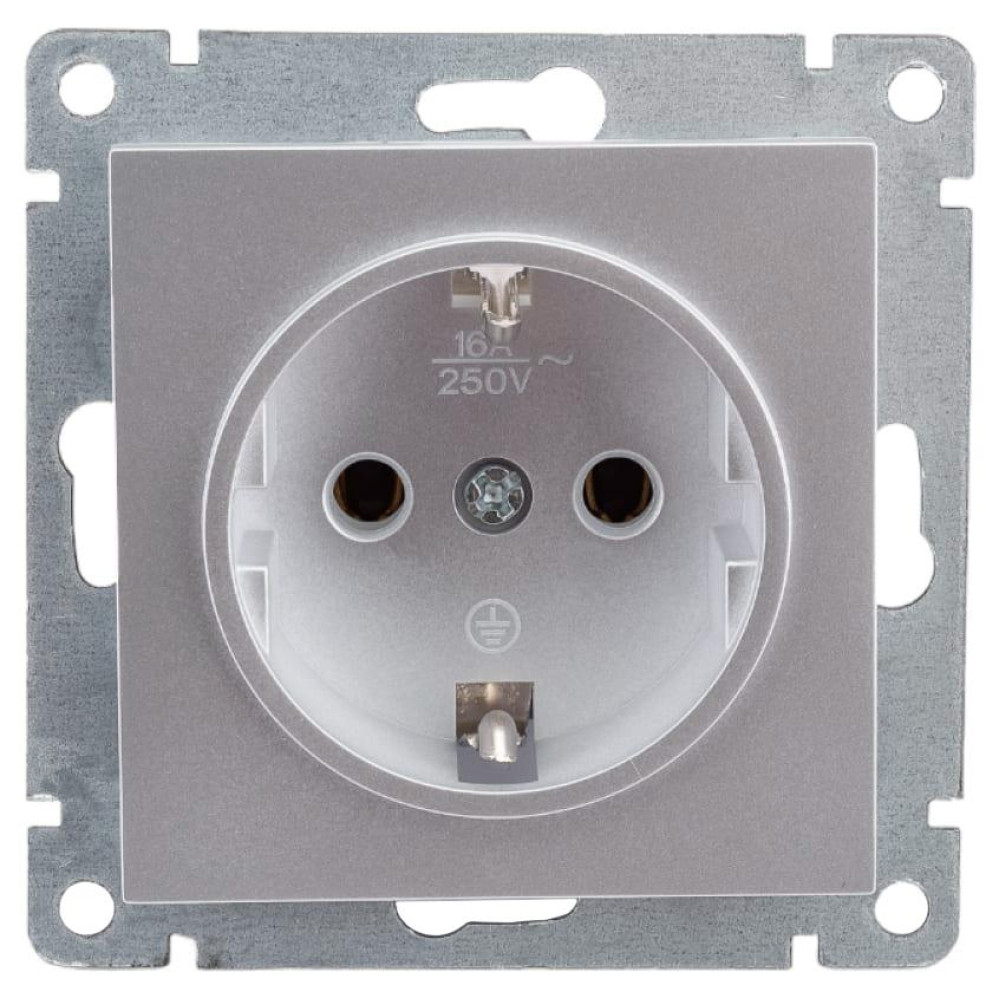 Розетка 2P+Е Universal Афина 16А серебро А0028-S