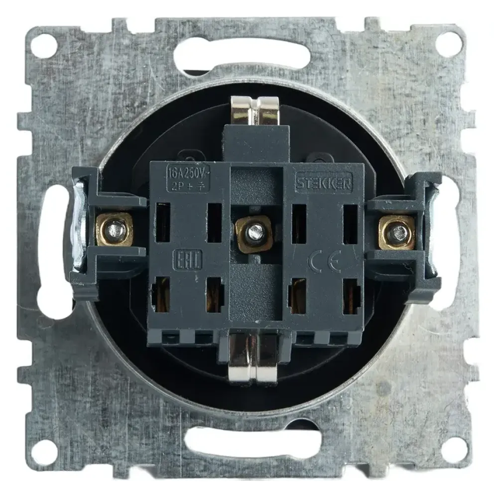 Розетка 2P+Е Катрин черный с защитной шторкой STEKKER GLS16-7110-05 лаконичное и стильное решение для любого интерьера. Розетка выполнена из ABS-пластика и латуни, цвет черный. Номинальное напряжение 250, номинальный ток 16А, диапазон рабочих температур 0+35°C, IP20.